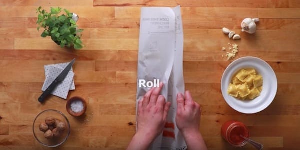 Once you filled all the spots on the paper, you just rolled it up, put the whole thing in the oven and after a few minutes the dish was ready.