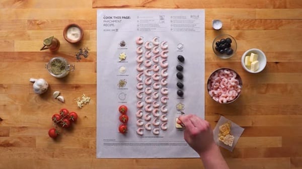 IKEA created recipe posters. But these were not for the wall. They were printed on baking paper (parchment paper) using safe, edible ink.